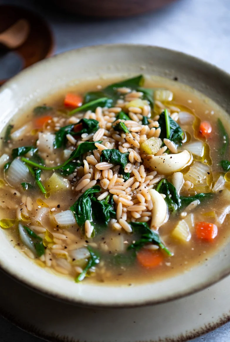 Ingredient List: Orzo Pasta Spinach Garlic Onion Carrot Celery Chicken Stock Powder Oregano Basil Black Pepper Parsley Red Pepper Flakes